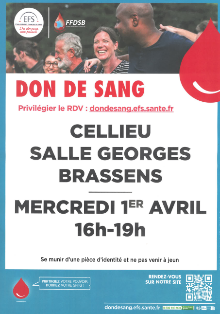 Don de sang mercredi 1er Avril