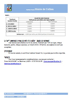 L’accueil de loisirs vacances sera ouvert du 19 au 23 octobre, inscriptions les 29/09; 01/10 et 03/10, plus d’informations : Plaquette d’octobre 2015