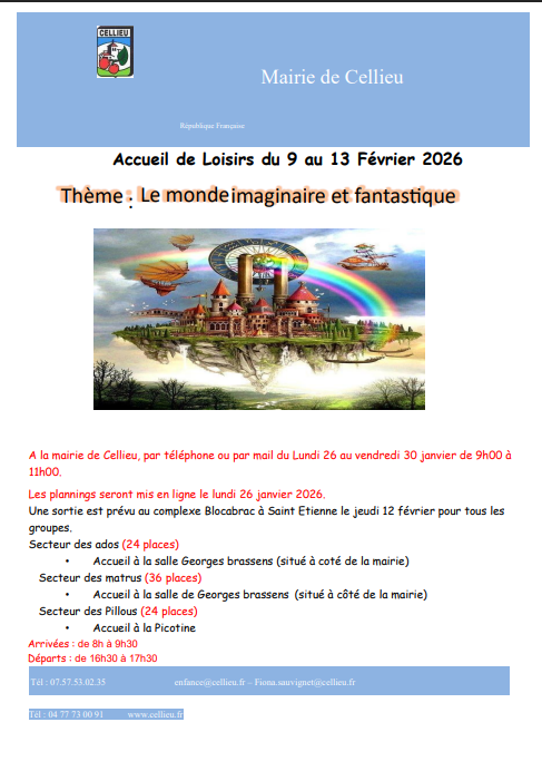 Inscriptions pour centre de loisirs du 9 au 13 Février 2026: