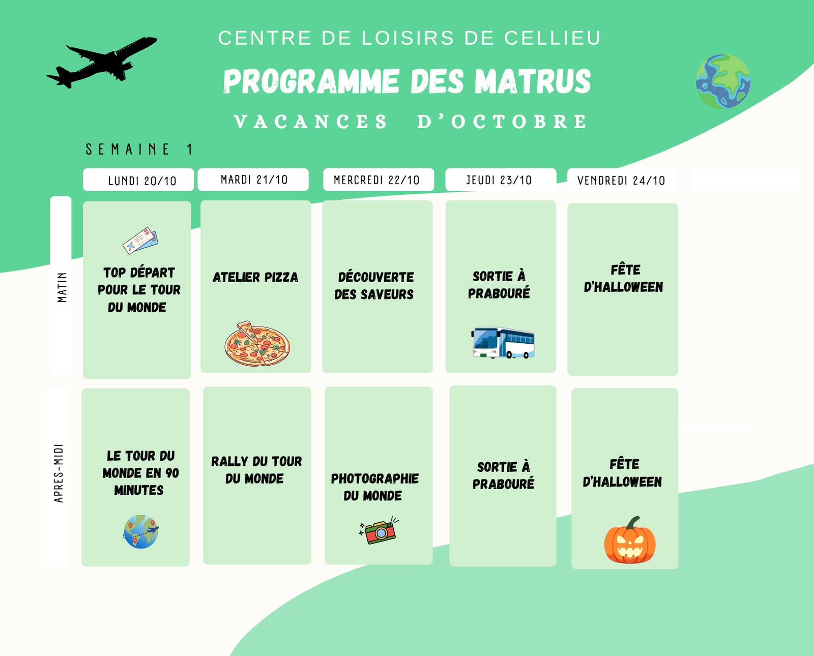 L’accueil de loisirs vacances sera ouvert du 21 au 25 octobre, inscriptions du 7 au 11 octobre, plus d’informations : Plaquette d’octobre 2024