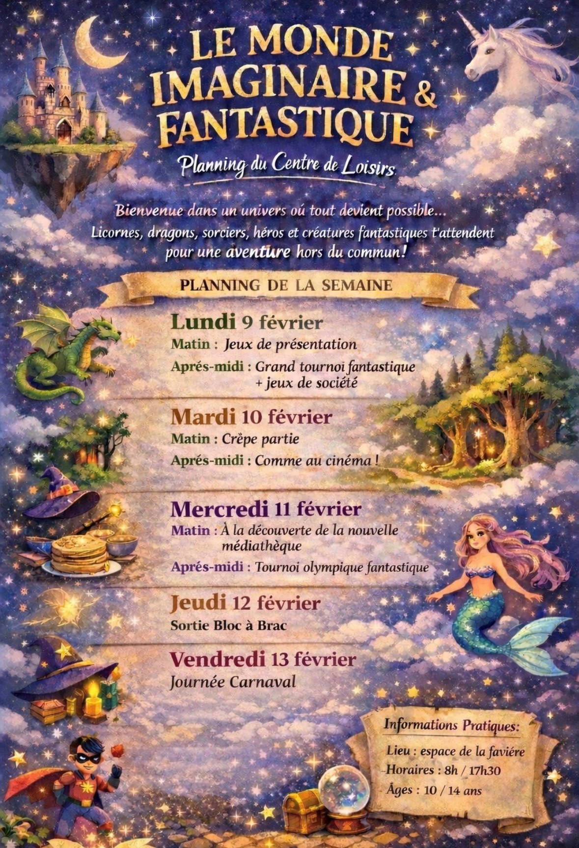 L’accueil de loisirs vacances sera ouvert du 24 au 28 Février, inscriptions dès le 10 Février, plus d’informations Plaquette vacances d’hiver 2025.
